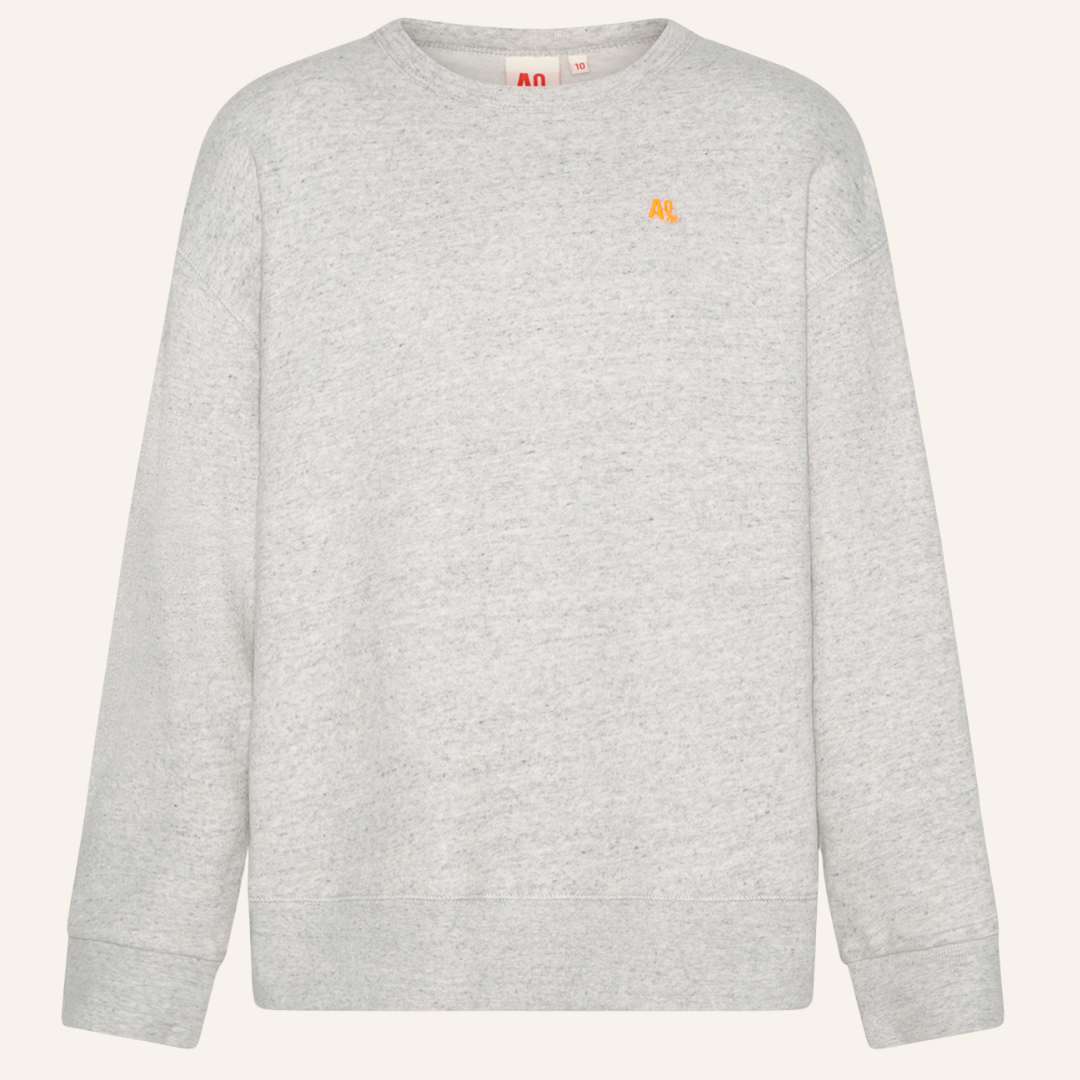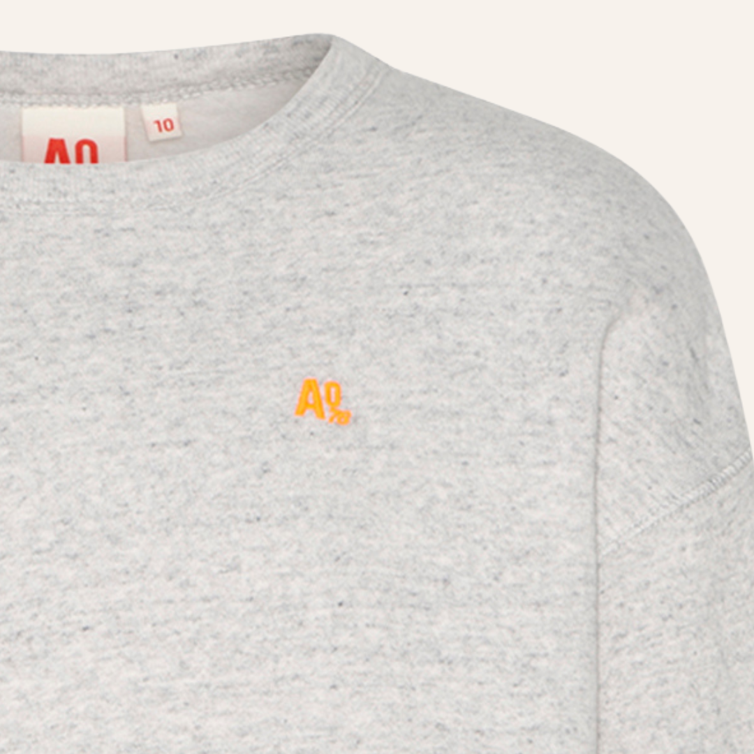 Toffe grijs gemêleerde sweater van American Outfitters met neon oranje logootje op de borst