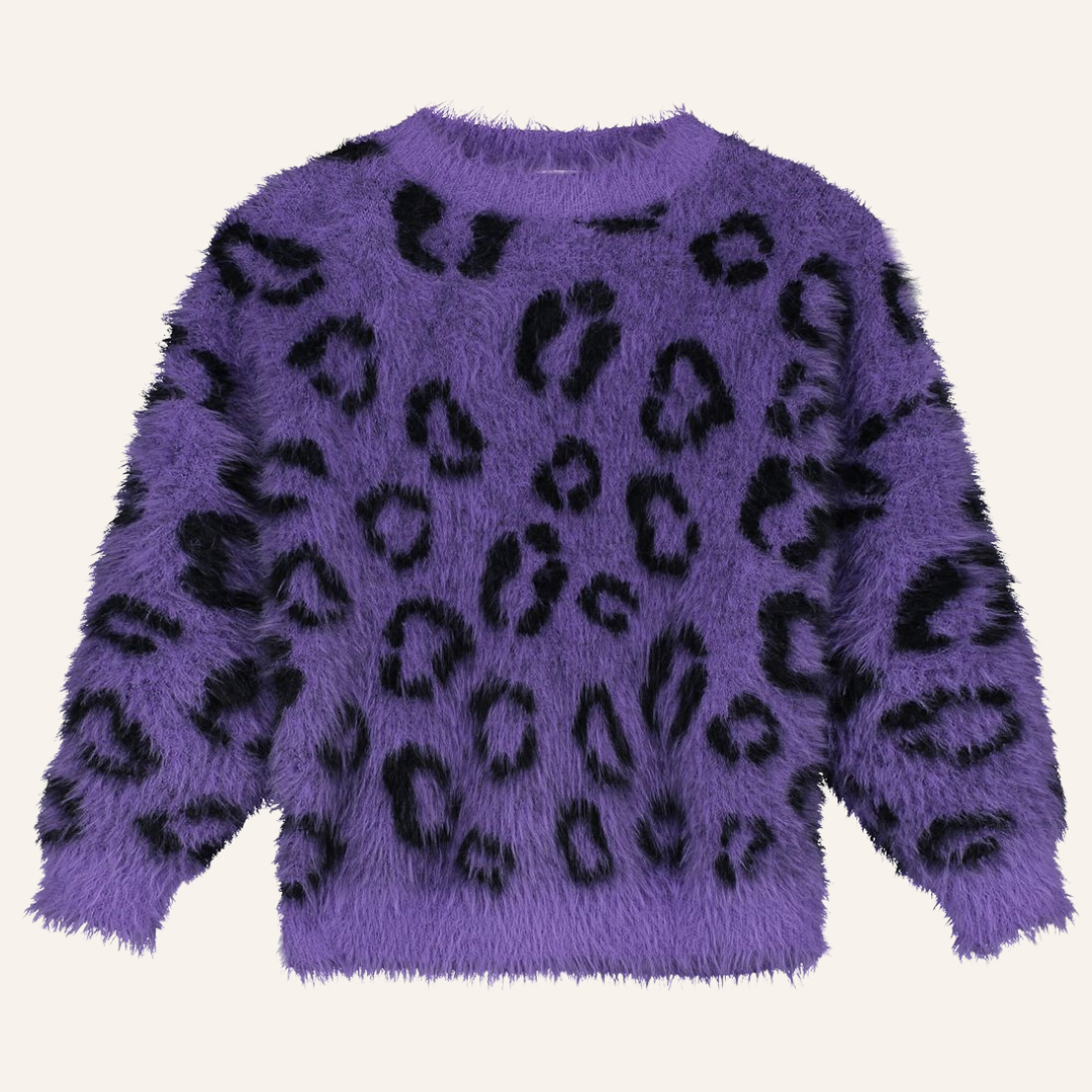 Mega zachte fluffy trui van Call me Frankie in paars leopard