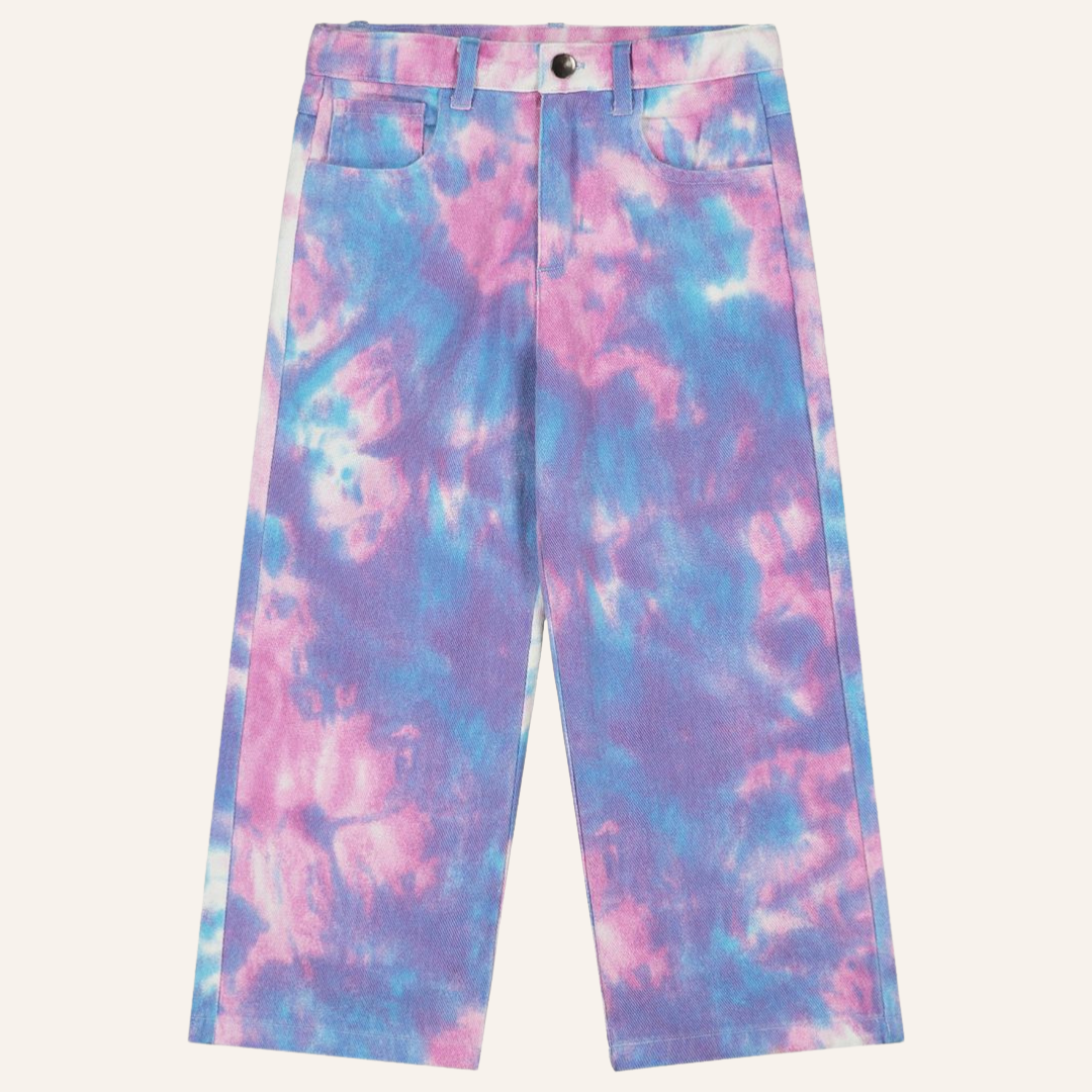 Tie dye jeans van Call me Frankie in de kleuren blauw lila roze en wit