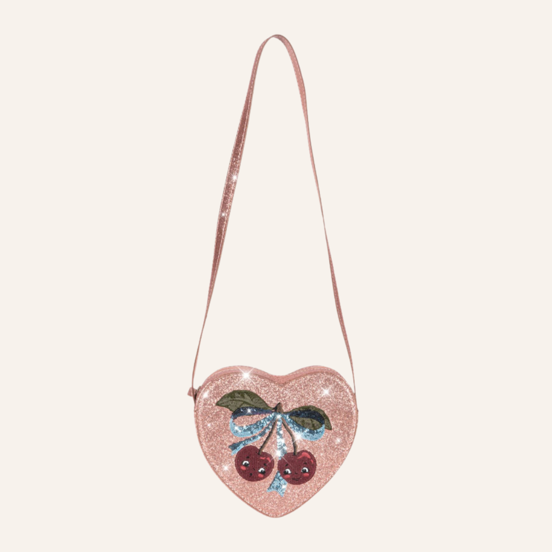 Glittertasje in de vorm van een hart met kersjes van Konges Sløjd.