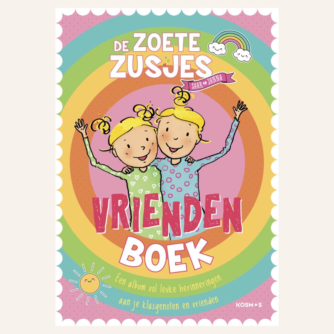 De Zoete Zusjes hebben nu een hun eigen vriendenboekje! Een album voor de mooiste herinneringen aan klasgenoten en vrienden. In dit vriendenboek kunnen kleuters een heleboel grappige weetjes over zichzelf vertellen.