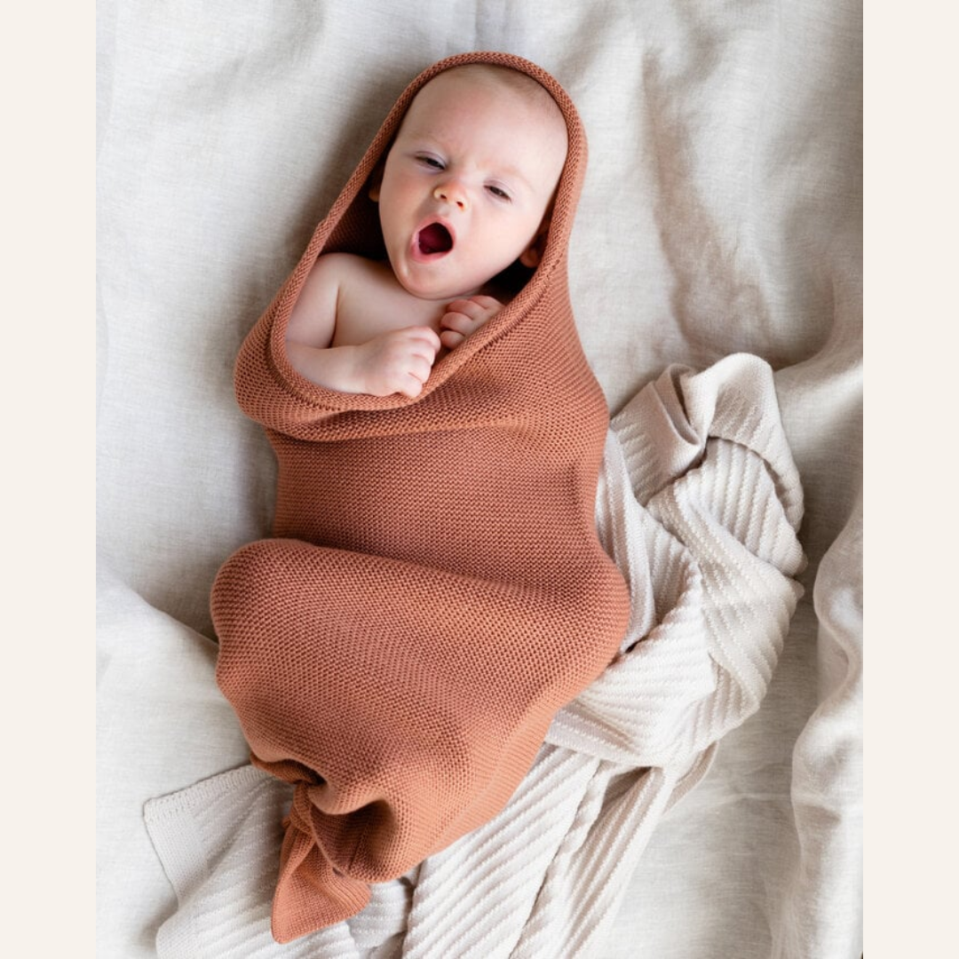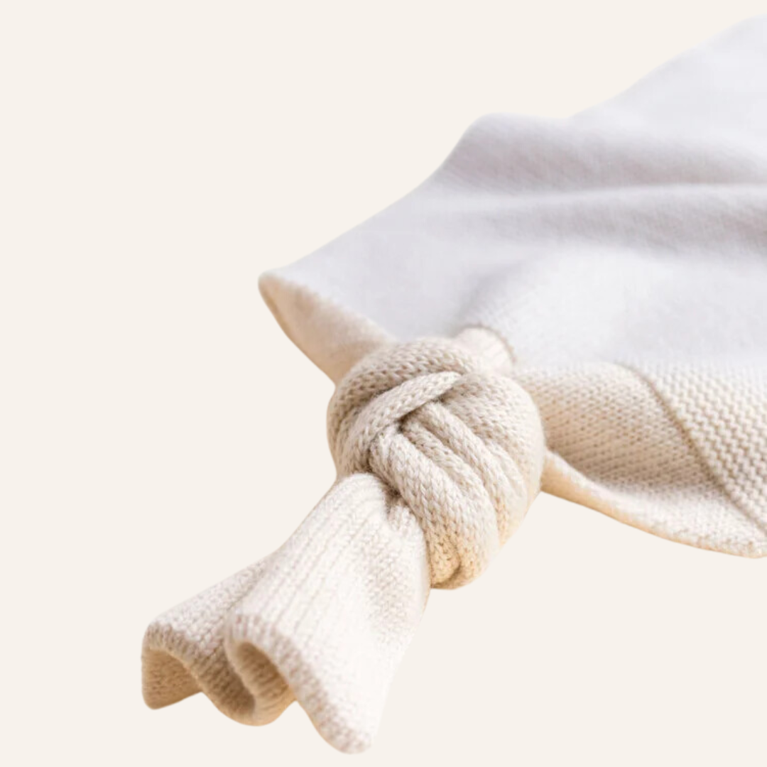 Je kan je kleintje helemaal in het coconnetje inpakken, of het hoofdje en de handjes uit de cocon laten.De cocon is op maat te verstellen door de knoop die er onderaan in zit. Zo groeit de cocon met je kindje mee.
