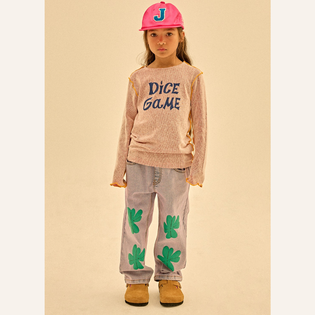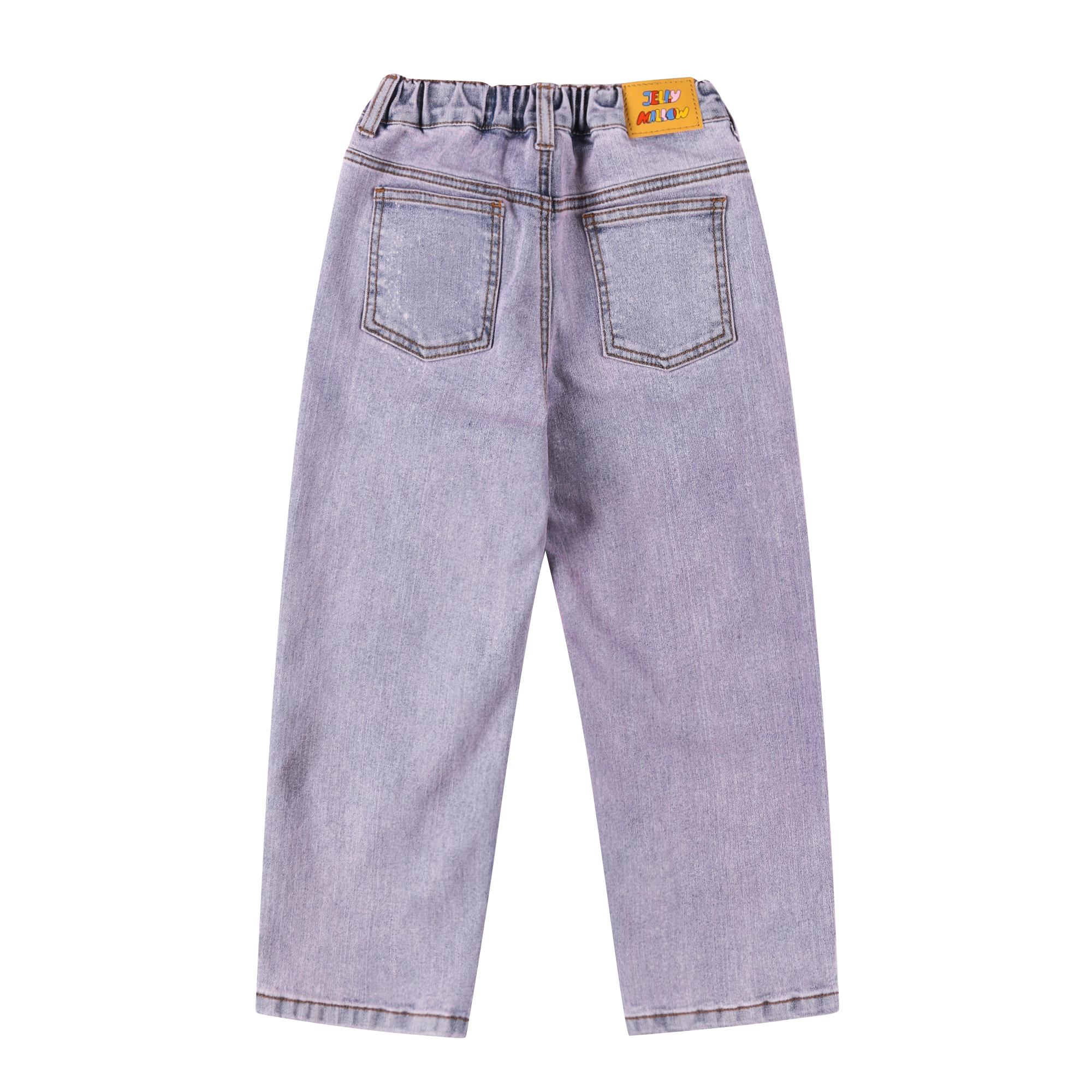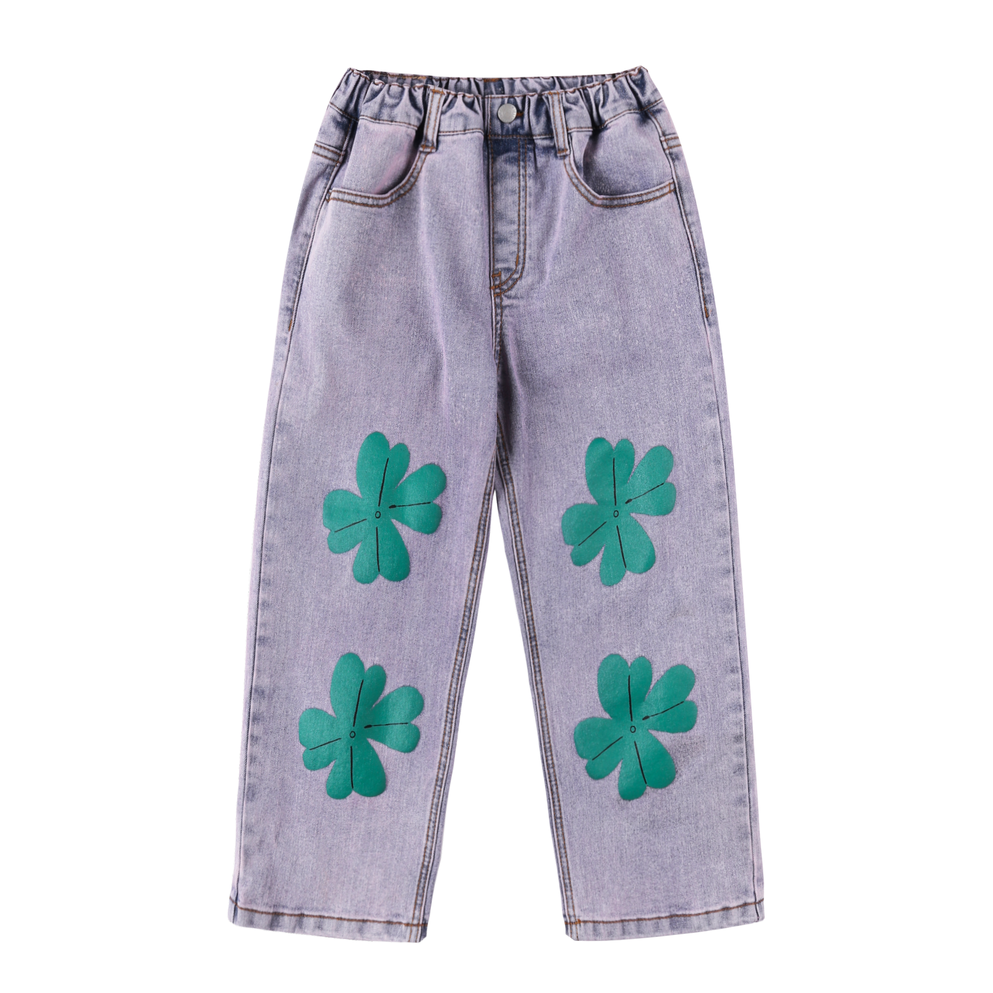 Wat een te gekke spijkerbroek van Jelly Mallow met klavertjes op de knieën en een wat roze gloed