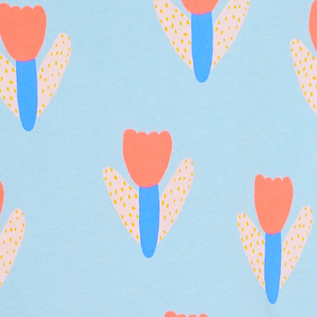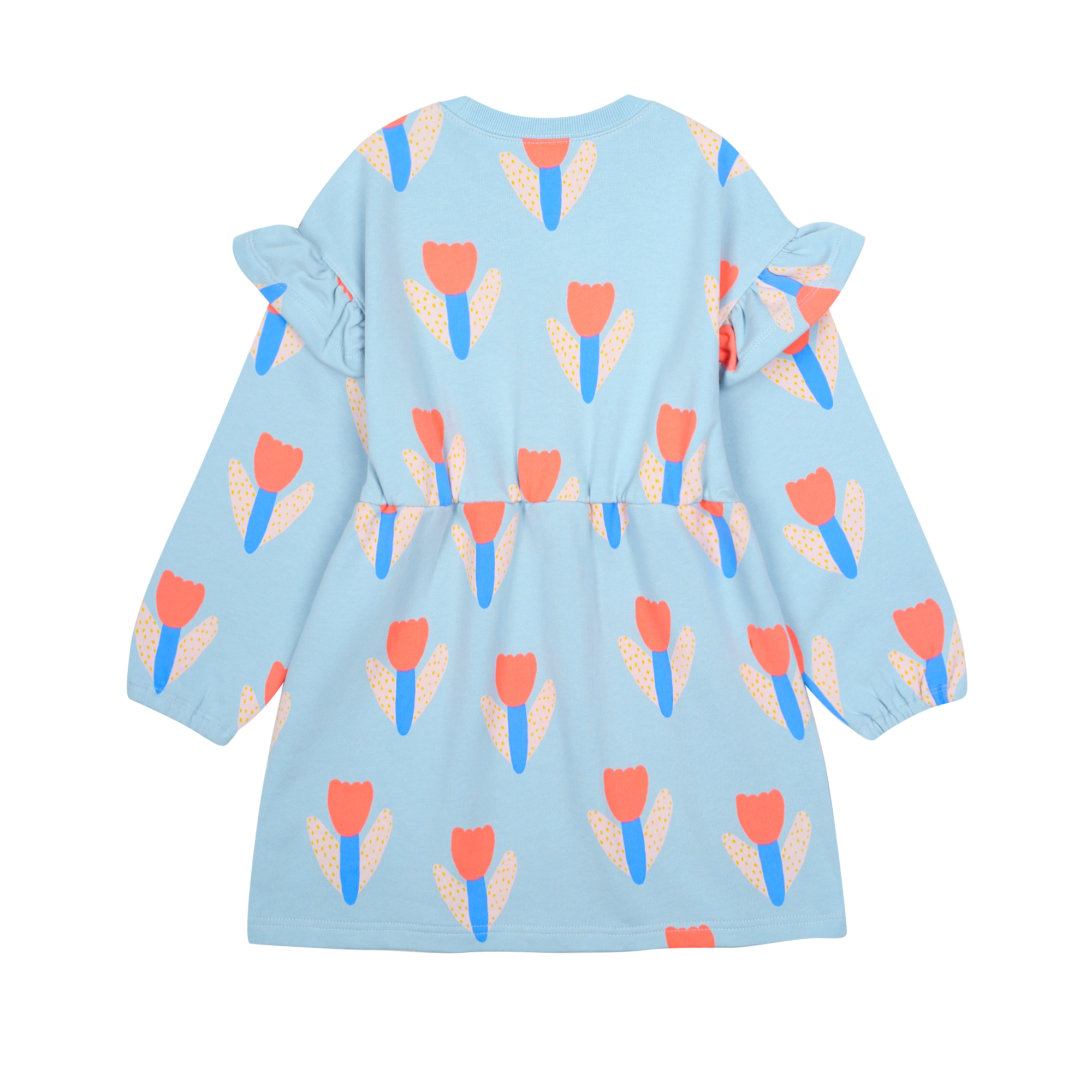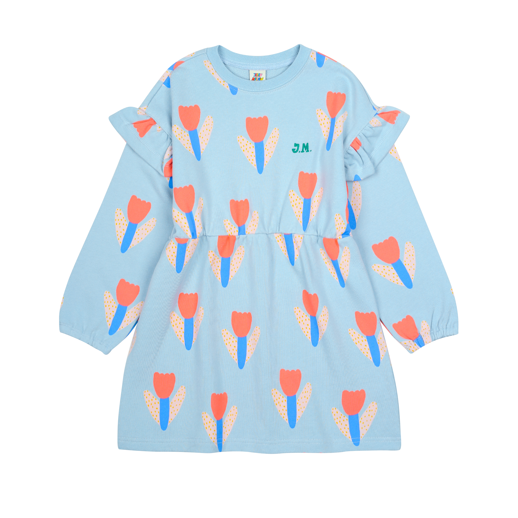 Prachtige lichtblauwe jogging jurk van Jelly Mallow met all over tulpen