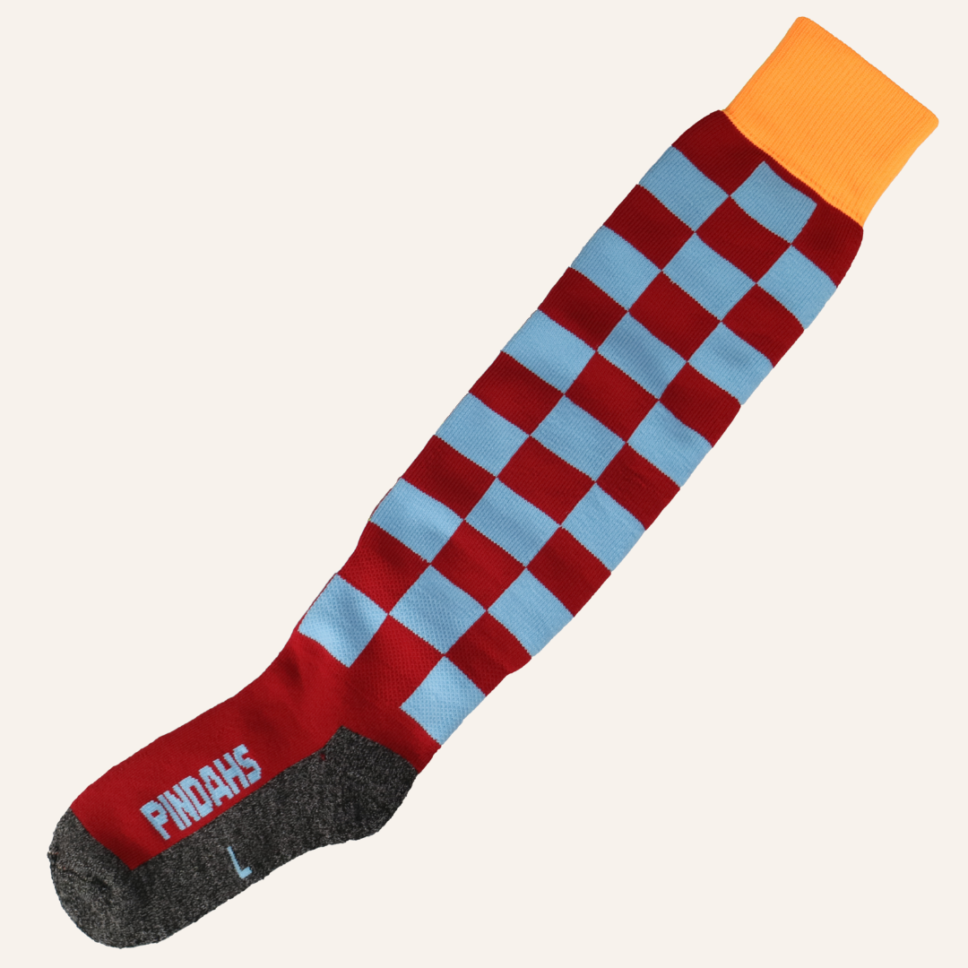 Account aanmakenEindelijk zijn ze er ook zonder glitterranden, voor de jongens of stoere meiden! Hier zie je sportsok Jip: lichtblauw/rode checkerprint en een fluo oranje boord. De sportsokken van Pindahs zijn goed over scheenbeschermers heen aan te trekken en zakken niet af. Door de extra elasticiteit sluiten de sokken goed aan op je been. Daarnaast creëer je tijdens het trainen en sporten ook direct je eigen look.