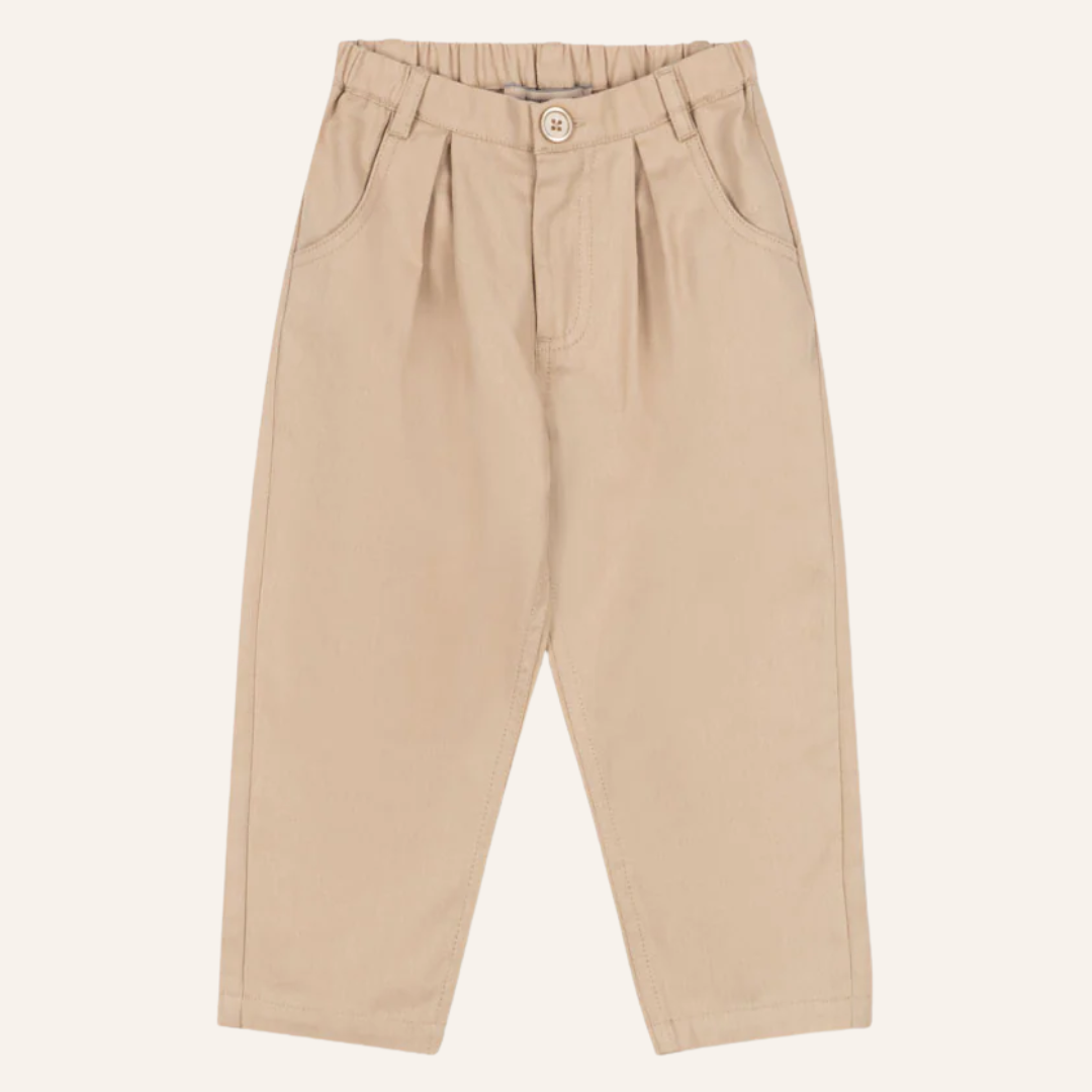 Account aanmakenZachte broek van een iets zwaardere twillstof. Chino ontwerp met steekzakken, een imitatiegulp, riemlussen en een enkele knoop aan de voorkant.