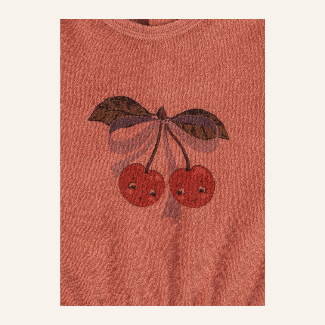 Badstof zomerpakje van Konges met kersjes.