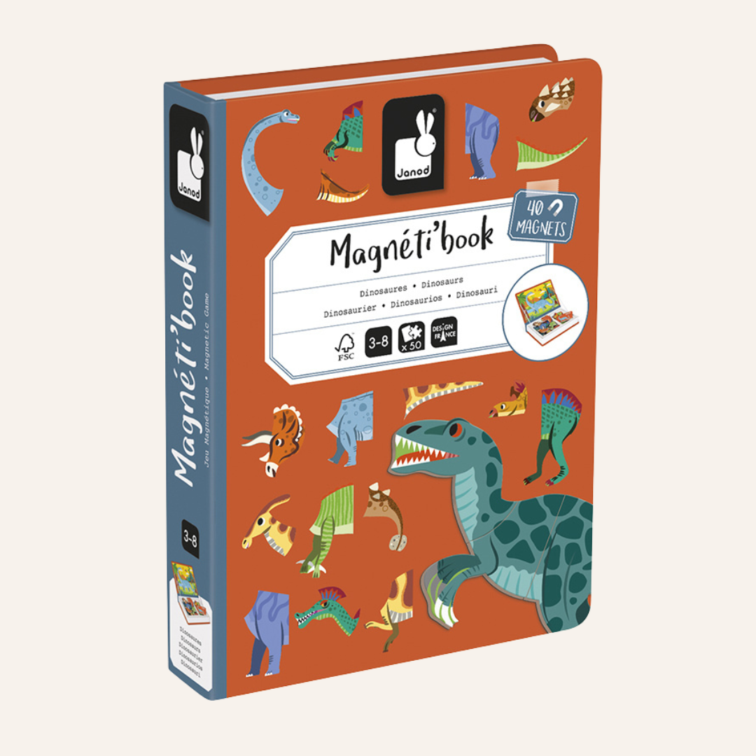 Account aanmakenEducatief magneetspel van karton met dinosaurussen als thema, bestaande uit 40 magneten en 10 kaarten met de Latijnse naam van de dinosaurus. Open het boek en maak dezelfde dinosaurus op de magnetische achtergrond als deze die op de kaart is aangegeven met behulp van de magneten. Het kind kan zich tevens vermaken met het mengen van verschillende stukken voor het creëren van nog meer griezelige wezens, gezien alle stukken onderling verwisselbaar zijn. Geschikt voor kinderen van 3-8 jaar.