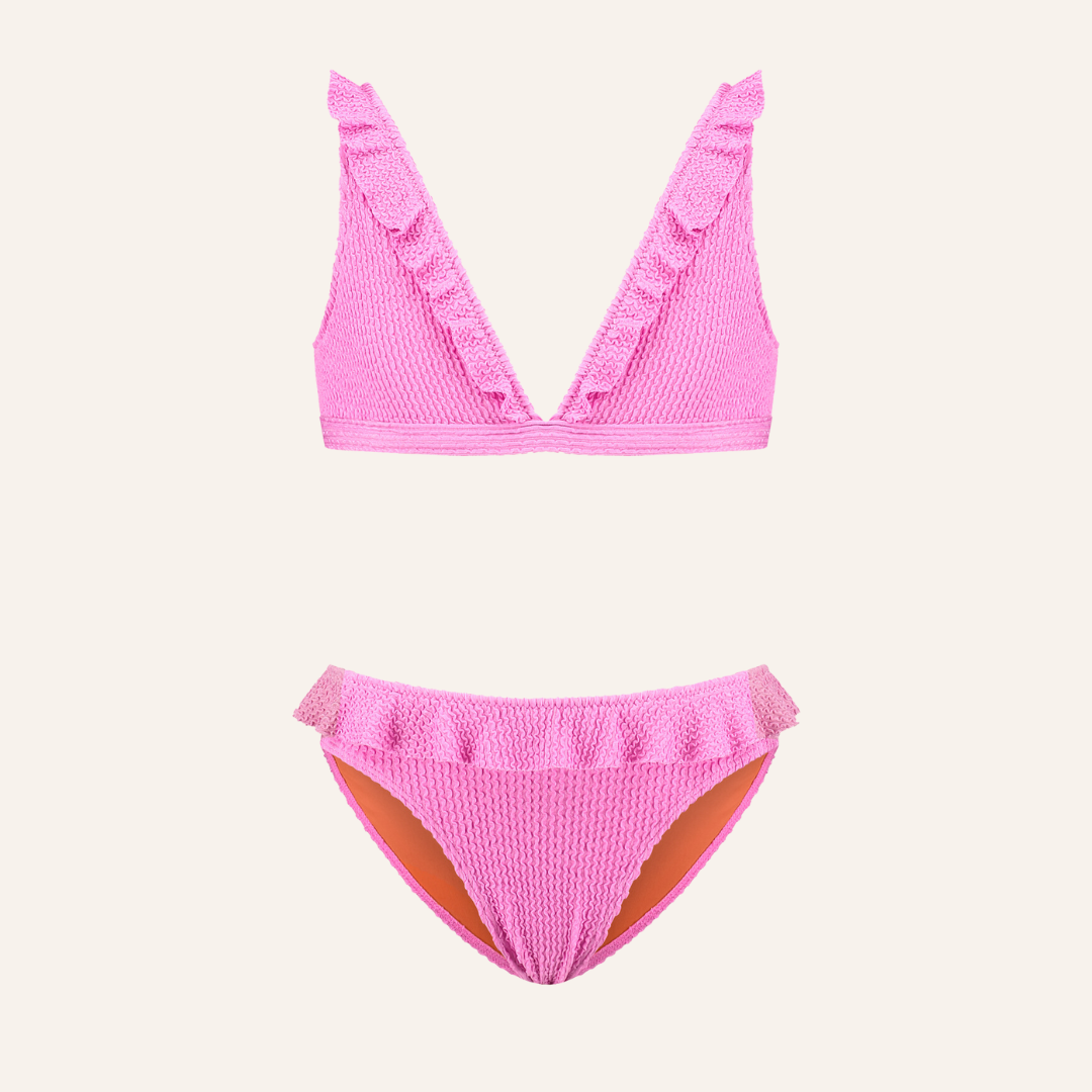 Account aanmakenRuffles bij de randje en het zomerse kleurtje maken dat je gelijk verliefd wordt op deze bikini. Het is niet eens erg als je een stukje van de binnenkant ziet, want zelfs die is mooi van kleur.