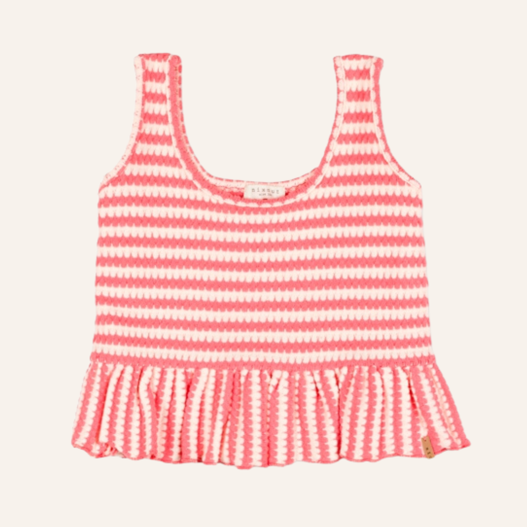 Leuke gehaakte tank top van Nixnut met een koraalroze streep