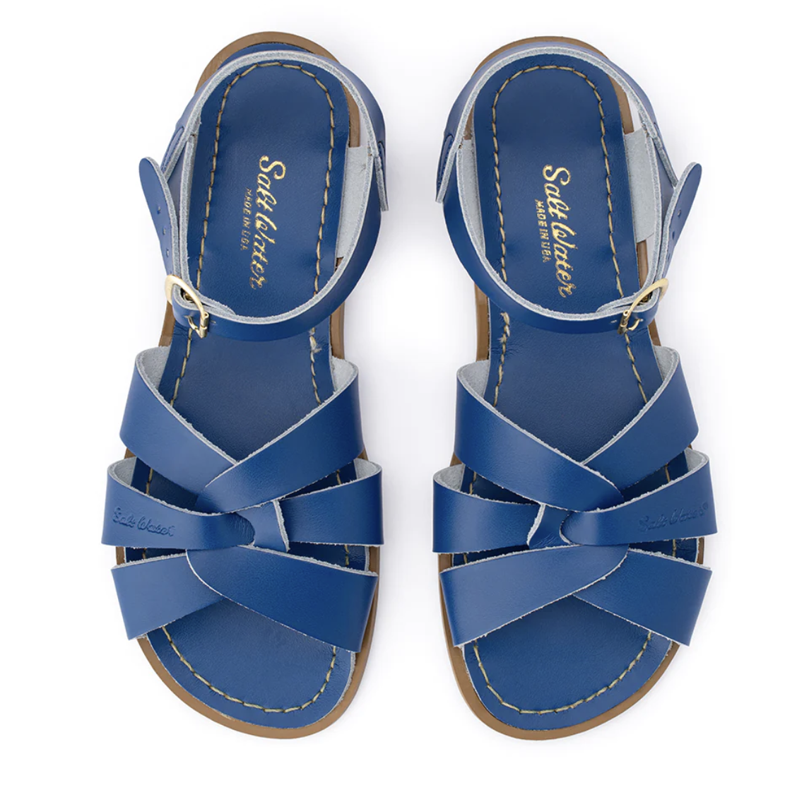 De Salt-Water Original wordt gekenmerkt door zijn handgenaaide zool en het gevlochten bovenwerk van leer. De gespjes zijn roestvrij. De sandalen - en dat is zó fijn - kunnen in het water gedragen worden.