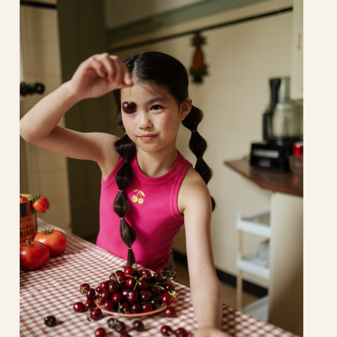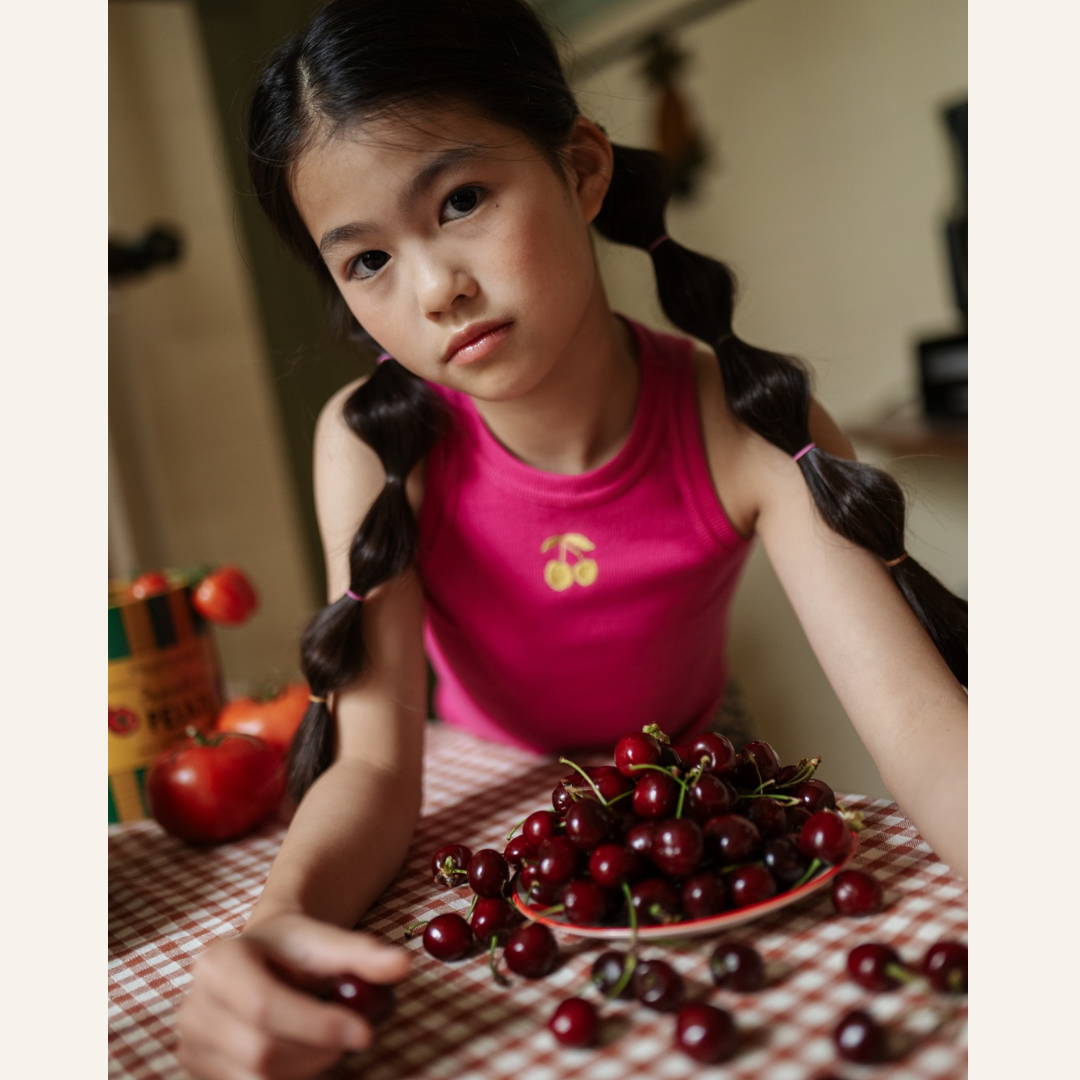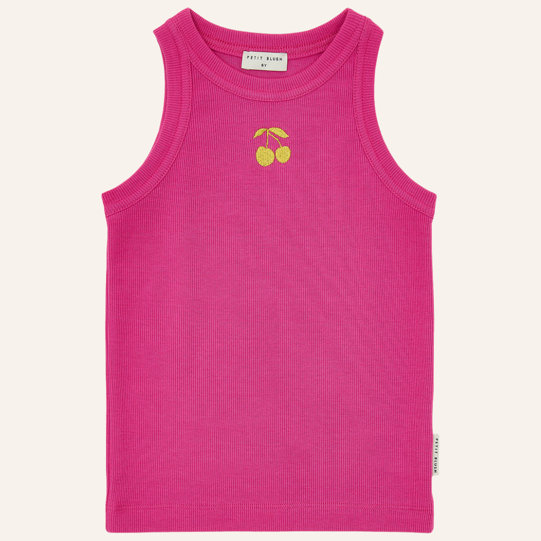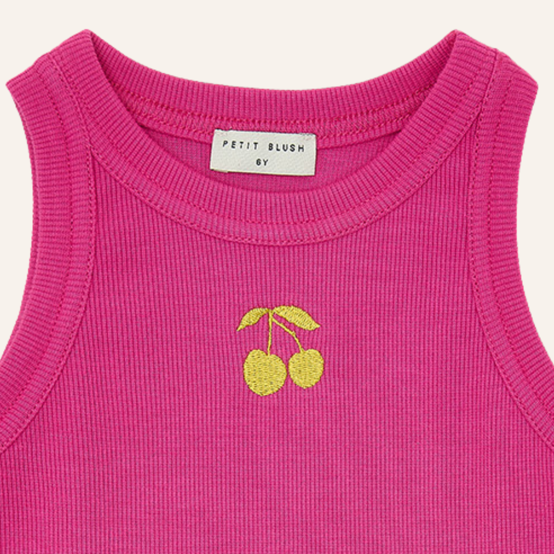 Mooi rib topje van Petit Blush met gele kers op de voorzijde
