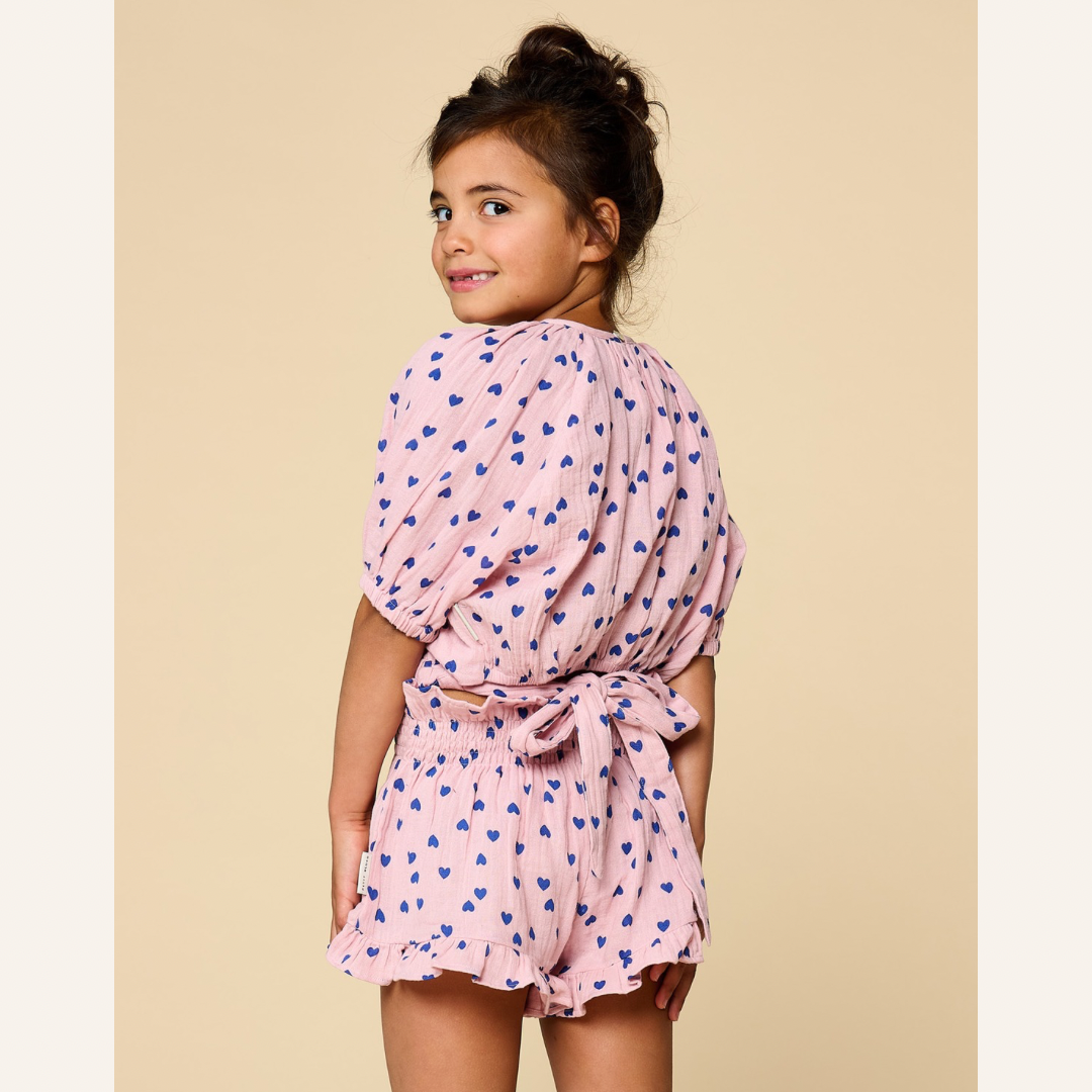 Soepel short van Petit Blush met all over blauwe hartjes
