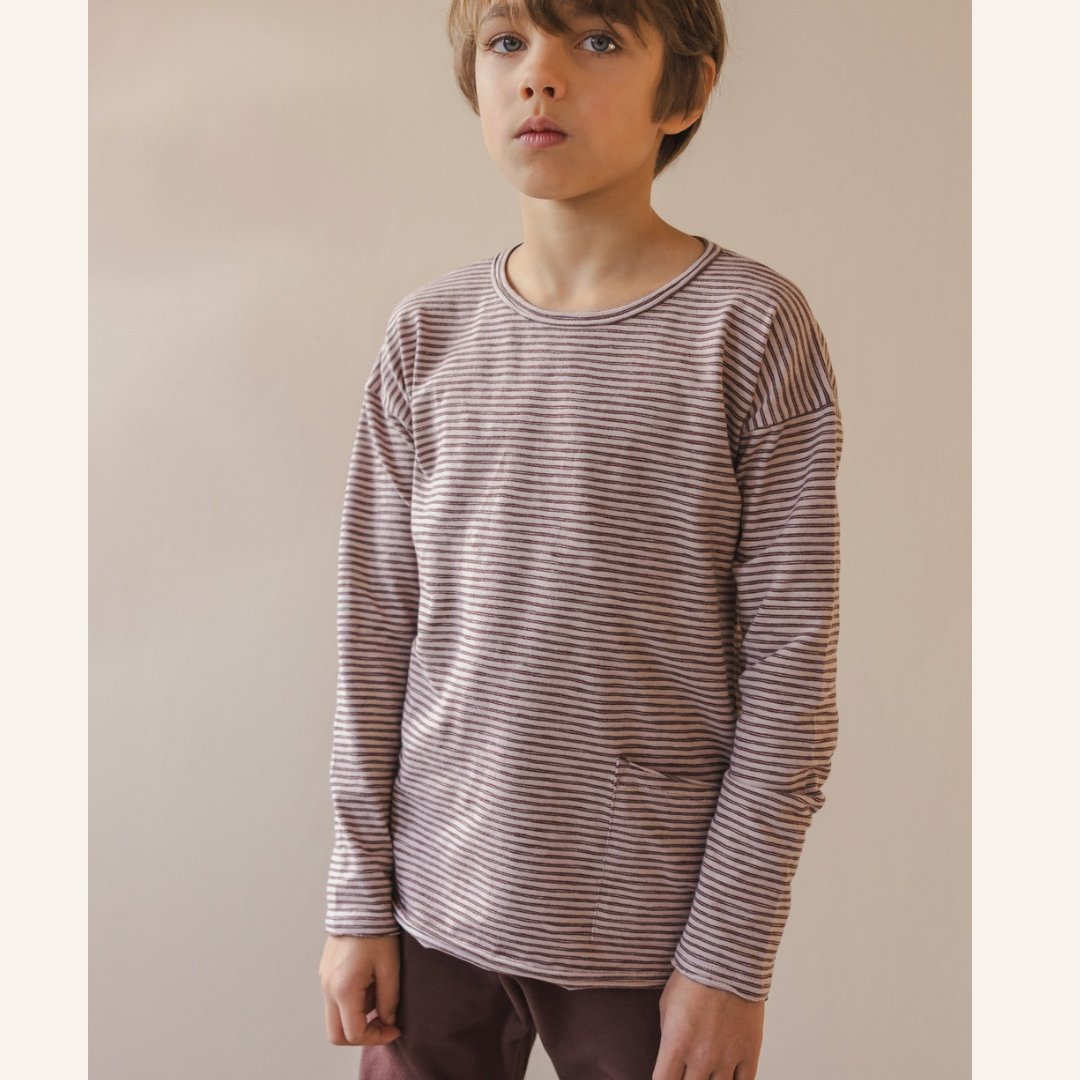 Phil&Phae Drop shoulder top LS stripes - Chocolate