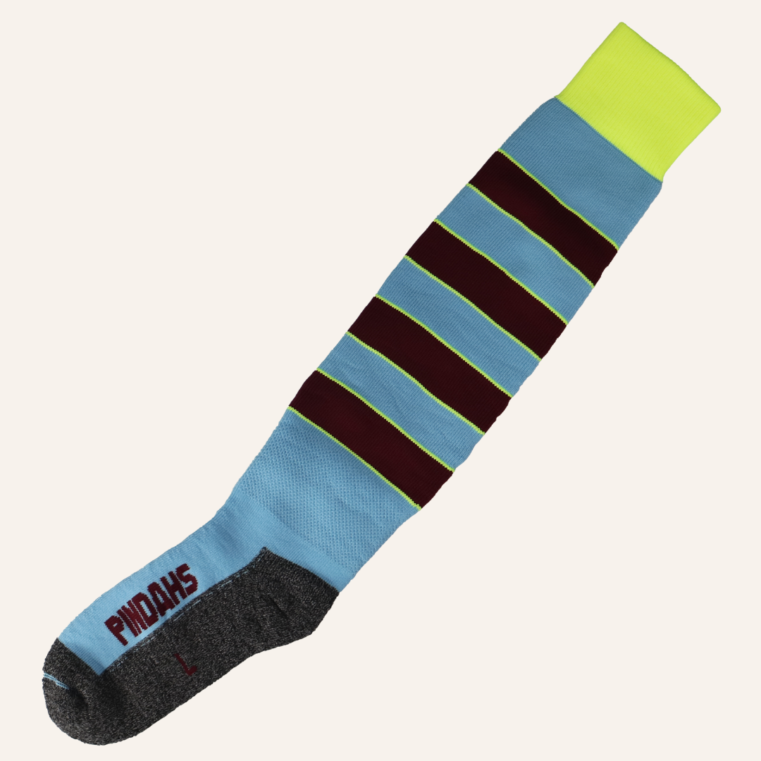 Account aanmakenEindelijk zijn ze er ook zonder glitterranden, voor de jongens of stoere meiden! Hier zie je sportsok Moos: lichtblauw met bordeaux rode randen en een vleugje fluo geel! De sportsokken van Pindahs zijn goed over scheenbeschermers heen aan te trekken en zakken niet af. Door de extra elasticiteit sluiten de sokken goed aan op je been. Daarnaast creëer je tijdens het trainen en sporten ook direct je eigen look.