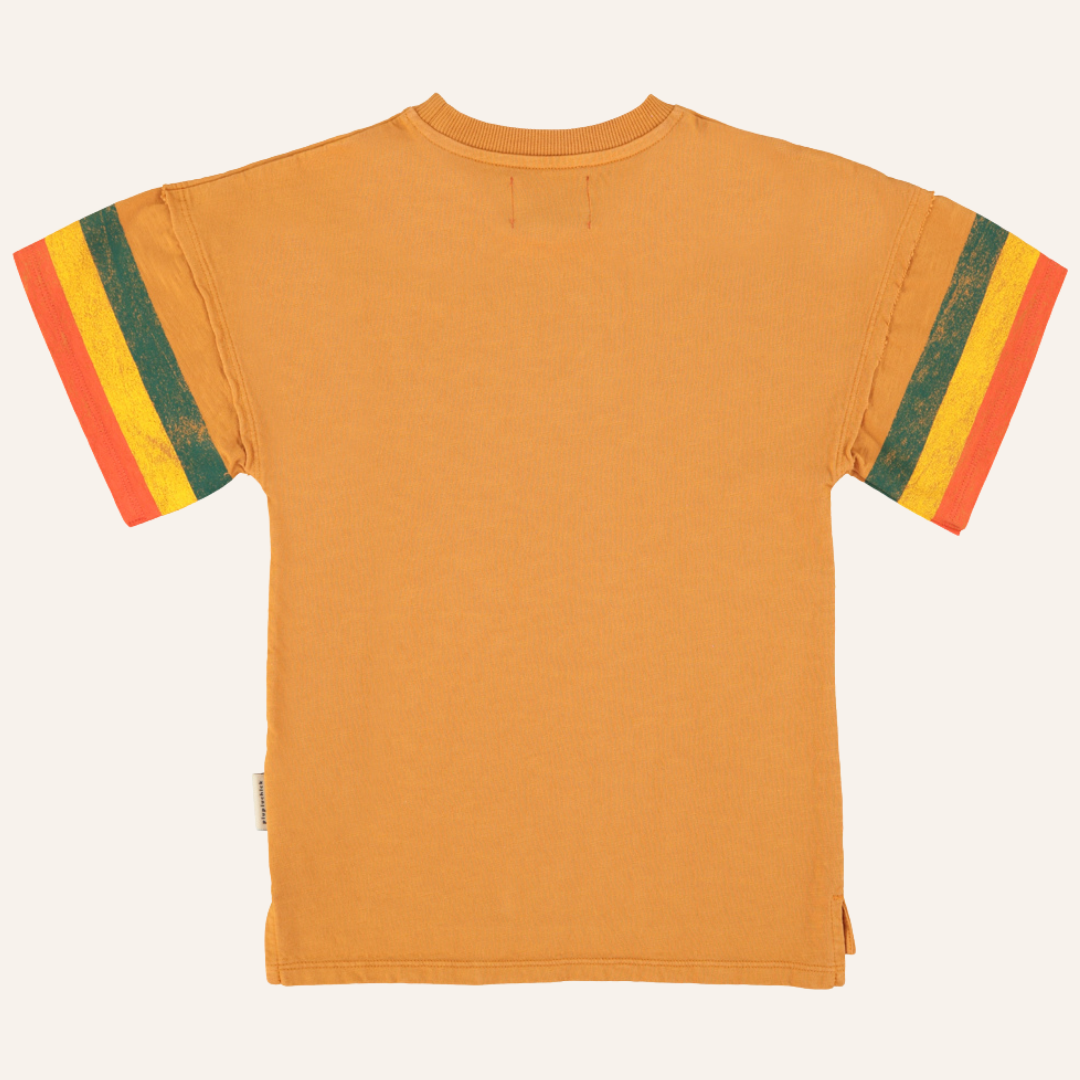 Piupiuchick T-shirt dress | Camel w/ multicolor stripes