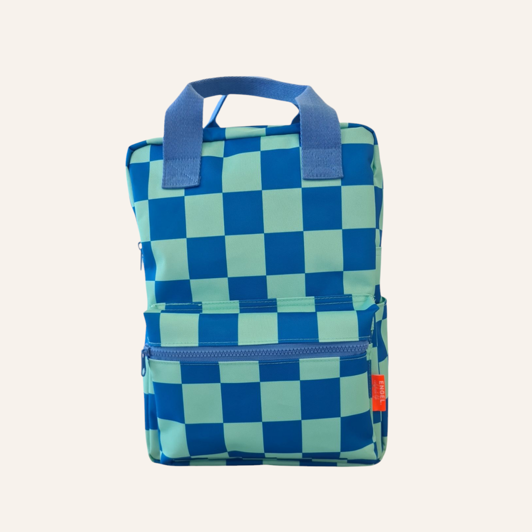 Stoere backpack met blauwe en groene tinten.