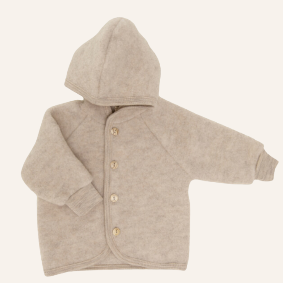 Wij zijn super blij dat Engel voor hun jasjes voor wolfleece heeft gekozen. De extra fijne biologische wol is donszacht en absorbeert vocht tot dertig procent van het eigen gewicht. En dat zonder klam aan te voelen. Een belangrijke eigenschap omdat je kindje zijn of haar temperatuur nog moeilijk kan regelen. De wol-fleece overall van Engel is niet alleen fijn vanwege zijn materiaaleigenschappen. Ook de details maken dit een heel fijn jasje. De lange knoopsluiting (met houten knopen) maakt aan- en uittrekken eenvoudig.
