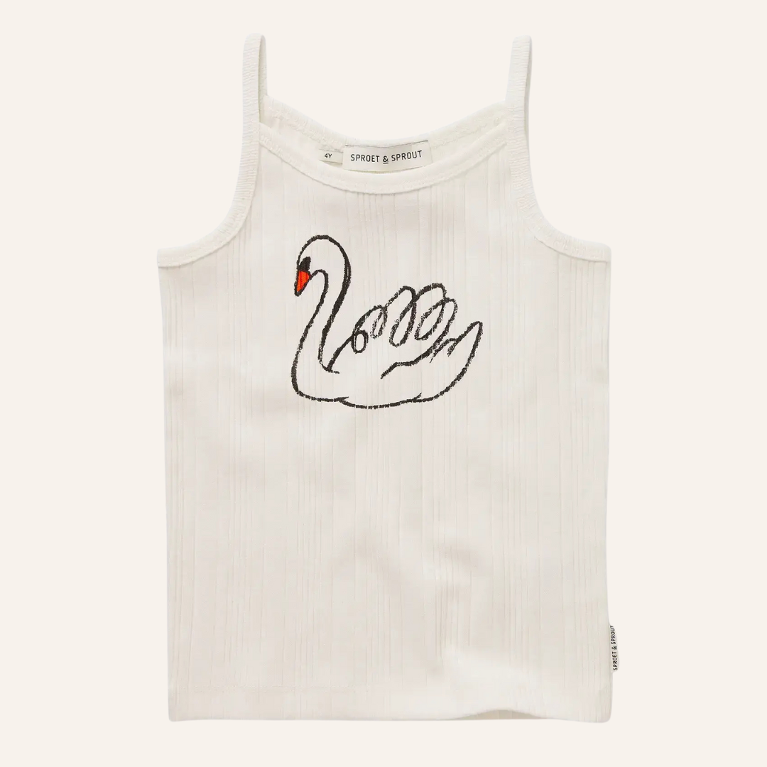 Sproet&Sprout Girls spaghetti top swan - Off white