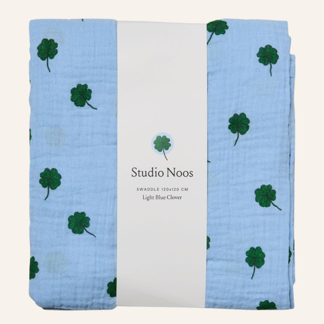 Studio Noos Swaddle Print Large | Light Blue Clover