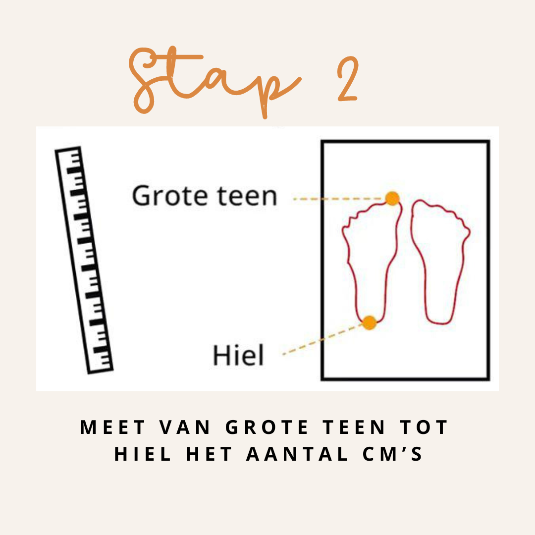Tip! Print de size chart uit en zet het voetje van je kindje hier op. Tel er 1 maat bij op en dat cijfer is de juiste maat!