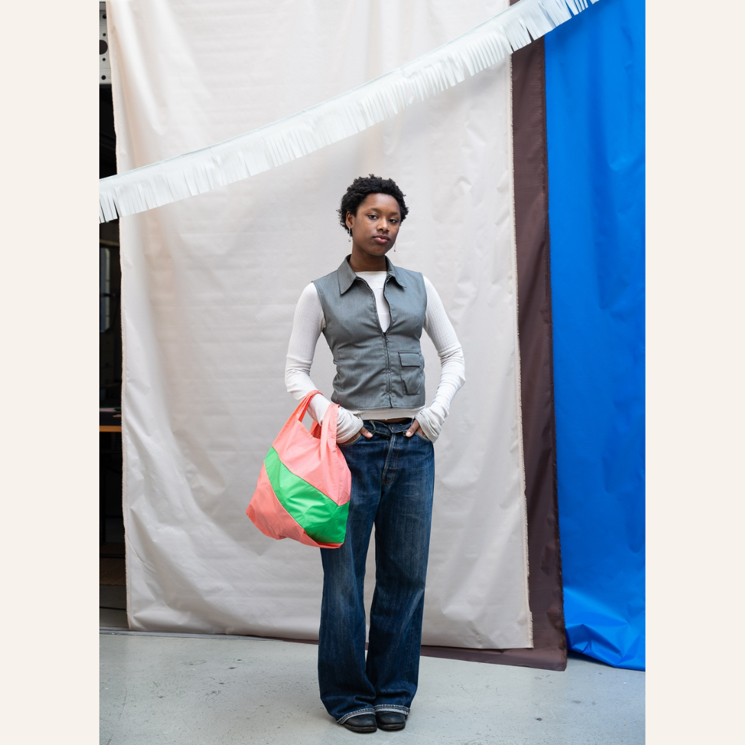 Susan Bijl - The New Shopping Bag Coral & Greenscreen size M