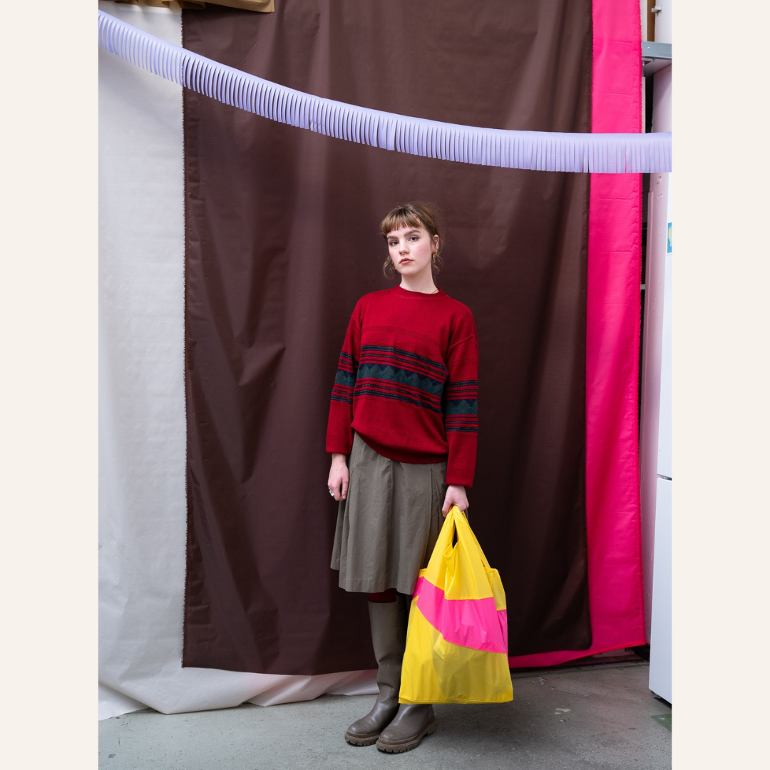 Susan Bijl - The New Shopping Bag TV Yellow & Fluo Pink size L