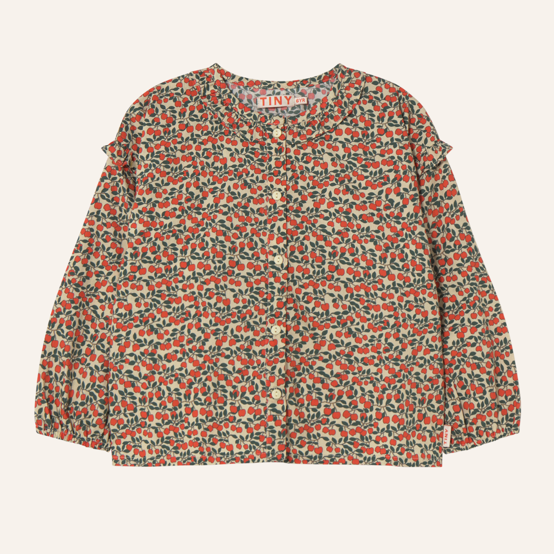 Prachtig appeltjes bloesje met ruffle bovenaan de mouw.